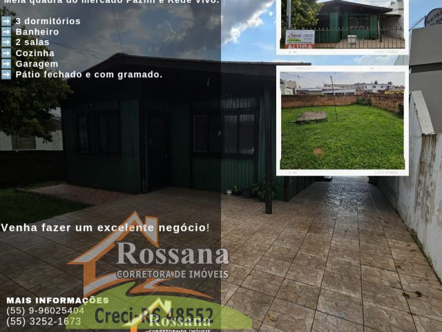 Ótima Casa para LOCAÇÃO!! 》Excelente localização, Rua Amarílio R. Caceres, meia quadra do Mercado Pazini e meia quadra da Rede VIVO 》3 Dormitórios 》Banheiro 》2 Salas 》Cozinha 》Garagem 》Pátio fechado e com gramado!! Venha agendar uma visita e fazer um excelente negócio!!! (55) 9-96025404