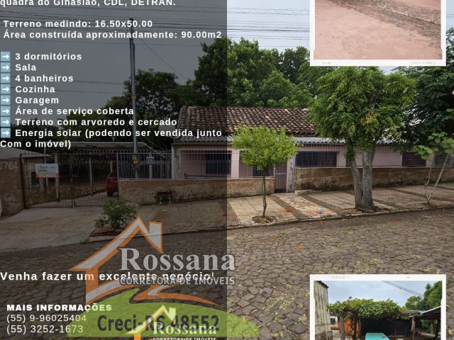 Ótima Casa a VENDA! 》Localizada na Rua Barros Cassal a meia quadra do Ginasião, CDL, DETRAN, ... 》Terreno medindo 16.50 x 50.00 》Com área construída de aproximadamente 90.00m2 》3 Dormitórios 》sala 》Cozinha 》4 banheiros 》Garagem 》Área de serviço coberta 》Terreno com arvoredo e cercado 》Com energia solar (podendo ser vendida junto ao imóvel) Venha fazer um excelente negócio!! (55) 9-96025404