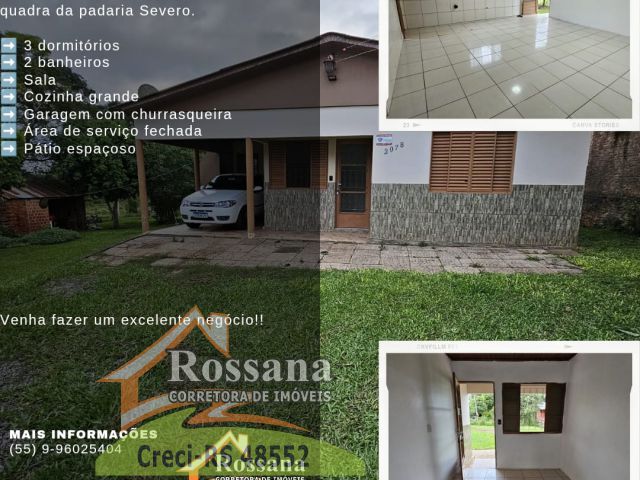 Ótima Casa para LOCAÇÃO Localizada na Rua Floriano Peixoto, meia quadra da Padaria Severo 3 dormitórios 2 banheiros Sala Cozinha grande Garagem com churrasqueira Área de serviço fechada Pátio espaçosos Venha agendar uma visita e fazer um excelente negócio! (55)9-96025404