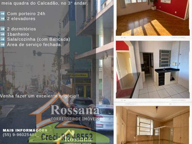Excelente Apartamento a VENDA!! Localizado em Santa Maria, na Rua Floriano Peixoto, esquina com Banco do Brasil, meia quadra do Calcadão, no 3° andar. Com porteiro 24h 2 elevadores 2 dormitórios 1 banheiro Sala/cozinha (com Bancada) Área de serviço fechada. venha fazer um excelente negócio!!